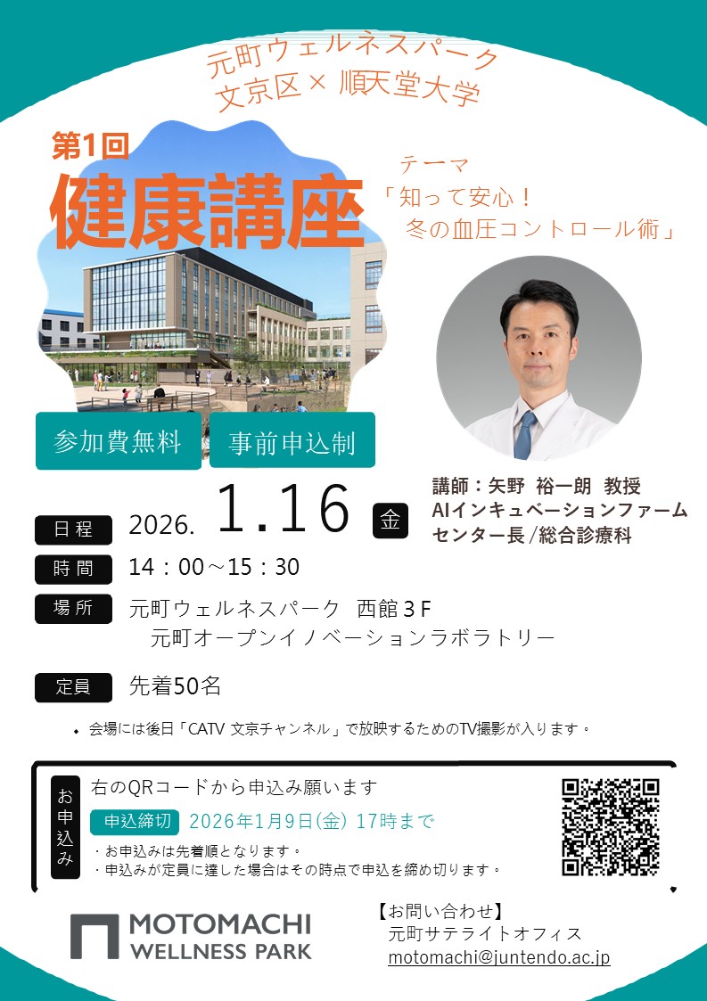 第1回 健康講座「知って安心! 冬の血圧コントロール術」を開催します。